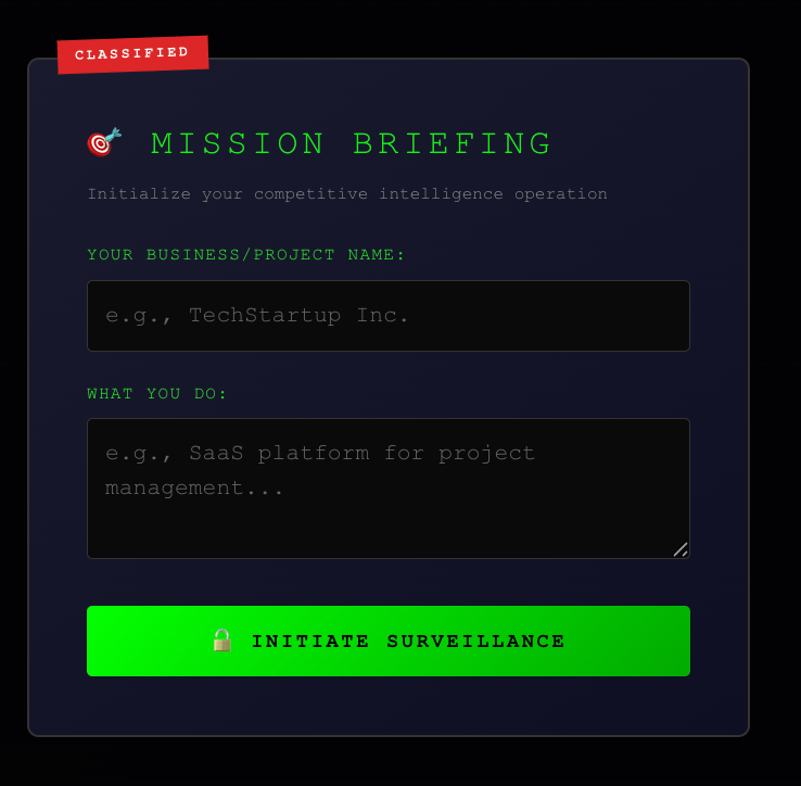 Competitor Stalker Dashboard: Build intelligence dossiers on your competition with social monitoring, pricing tracking, and "what are they up to?" alerts
