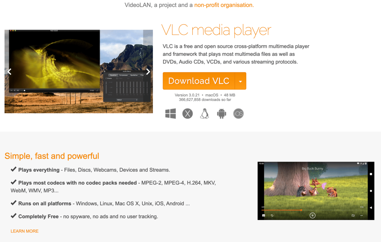 VLC Media Player is one of the greatest open-source projects on the internet that is still free to use and free of advertisements and snooping. The developer, Jean-Baptiste Kempf, has continually turned down millions of dollars from advertisers for access to his popular platform.